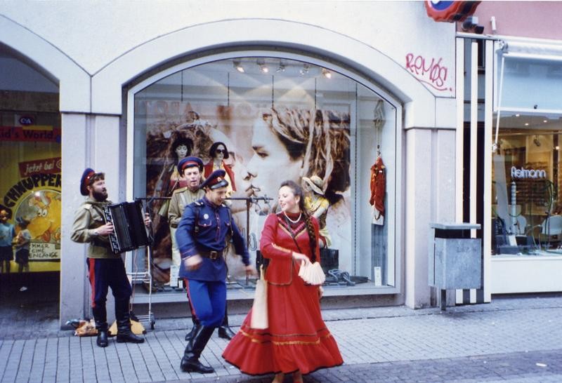 歐洲夏天晚上很晚天黑,所以我們有足夠的時間走遍這個城鎮最精華的地區。傍晚時分我們在一家超市打算買些熱食回到旅館當作晚餐。事實上,儘管德國人說的語言跟英文系出同源,都是日耳曼語系,但一般德國人民的英文我想跟在台灣一樣沒有好到哪裡去。這家超市的員工也因為如此,對我們很不客氣,我們深覺得受到不好的待遇,在買完食物後,同伴又氣著回去跟那員工理論,並且把經理叫出來。沒想到那經理也跟員工一鼻孔出氣地裝作聽不懂英文。同伴當時氣炸了,居然拿出他學過的幾句德文中最惡毒的話 "Scheißkerl!" 罵回去,並且還丟了一句 " Your country is indeed ashamed of you!" 之後便走了。