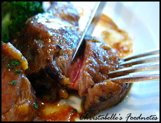 老師一家人也很推薦「菲力牛排」(這我就不方便照相了)。主廚很厲害的是,能夠把五分熟的菲力煎的完全不滲出血水,全然將牛肉的鮮美保留在肉中,切開之後外熟內生,生肉的部分顏色紅潤,看起來就吸引人!另外老師的女兒當天點小羊排,切開之後也是同等精彩!