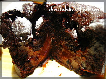 不過似乎事與願違,裡頭只有巧克力膏,我們自然有點小失落。但這失望持續的不久,因為馬上被驚喜給沖掉了。巧克力蛋糕的部分,幾乎每一口都充滿松露那種特殊的氣息,加上黑巧克力本身的酸苦,以及烘焙時外層過焦而有的「臭火乾」的味道,三者在口中輪替著。若吃到中間的巧克力膏,又還多了滑順,使口感上產生變化。