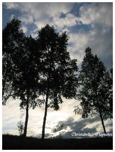 我的窗外景色美的不像話!是一個小丘陵,上面種著一排樹,接近日落時分,樹木被映襯的透著奇異的迷人光彩。