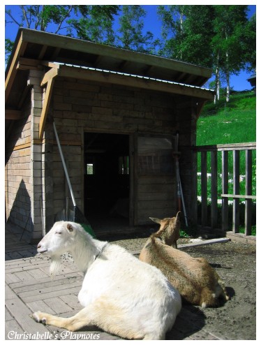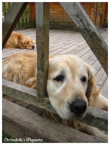 我在晚餐之前出去看看寵物們,可能肚子餓了,不管是黃金獵犬還是羊群都意態闌珊。老闆娘說大隻一點的獵犬是公的,叫 John,比較不愛動。母的比較活潑,毛色也比較深,叫做Nana。羊好像就沒有名字,不過他們的羊訓練有素,因為尿尿都會在同一的地方尿。