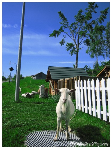 吃早餐時我開始與同樣也來自台灣的一對夫婦聊起來。我們就北海道旅行的經驗分享了一些心得,但我沒問他們是怎麼找到這家民宿的就是了。過了一會兒老闆出門將 John 及 Nana,還有羊放出來,讓他們跟我們玩耍,也讓羊自由吃草。Nana的確活潑極了,撲在我身上而且還跟我握手呢!:)