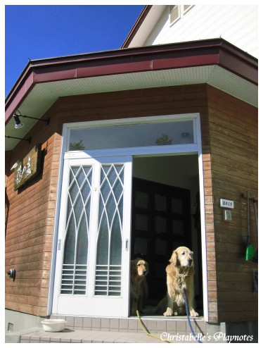 老闆還讓 John 跟 Nana表演絕活。他放了兩片高麗菜片在 John 與 Nana的腳背上,兩隻狗都按兵不動。我起初不知道老闆要幹嘛,後來老闆要我喊 "Yoshi!" 我便大喊了一聲!只見 John 跟 Nana 便比賽將腳背上的高麗菜吃掉,看誰動作快。很妙的一對狗兒!