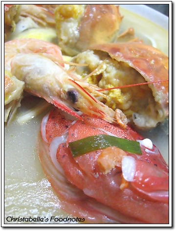 我得說,這夢幻煨麵的湯頭真是好!充滿東星斑的香甜!不過我只吃了麵、魚及喝湯。其他的蝦蟹得看[延伸閱讀]裡頭的bloggers補充了。但我發現克拉拉點的煨麵,裡頭的大閘蟹已經去了毛螯,但我們的卻保留,不知是怎麼回事。