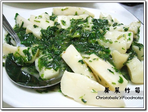 薺菜在台灣相當少見。味道有點像雪菜百頁的雪菜。竹筍非常香甜。是我很喜歡的一道清新菜餚。