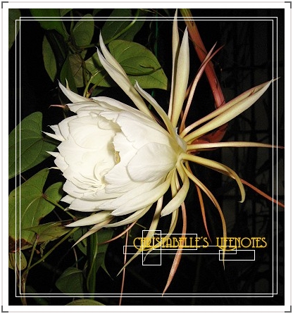 上回辦公室有個老師說她們家附近的某戶人家,陽台上常開滿燦爛的花朵。她便寫了張紙條放到該戶人家的信箱,謝謝他們提供這樣一個賞心悅目的小世界,供過往人們欣賞。我想收到這紙條的人家一定也很高興。所謂送花人手留香,種花人更是如此才是。這朵短暫盛開的曇花,對我而言可不止一現;她憑藉她內蘊的嬌美與香氣,在我腦中有了恆久的生命。