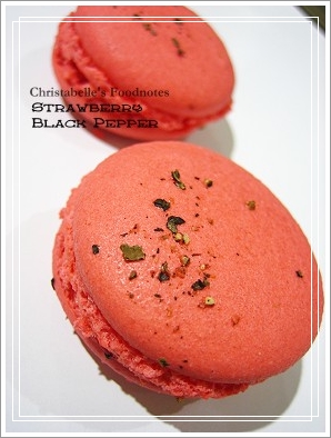 令我們最期待的「草莓黑胡椒」口味看起來與當初的感動有著相當大的分別。那回季節將黑胡椒與草莓混和,在享受草莓的香甜時口舌上也能有黑胡椒的刺激。不過這次的卻是草莓圓餅上灑著黑胡椒細粒,裡頭夾的也是草莓奶油餡。同事跟我有點小失望,因為那種每口都有著草莓黑胡椒的特殊混搭香氣不再,得吃到胡椒粒時才能體會到胡椒的作用。
