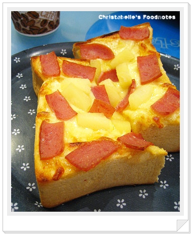這時候我習慣性地抖抖十指,做好預備動作,接著拿起其中一半。一邊看著藕斷絲連的起司牽絲,一邊盤算著從哪一角咬下去。土司邊烤的酥脆,白色麵包體卻柔軟地像雲朵一樣。配上經典的夏威夷組合口味,美好的一天從這裡開始。