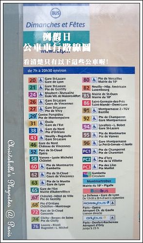 基本上巴黎的公車並沒有地鐵那樣方便, 而且如果不能直達目的地的話得換車, 費用 會比地鐵高。 另外, 由於巴黎很多道路是單行道, 並不是所有公車的回程都是在對面搭乘, 要稍微注意一下這點。 不過公車提供的旅行方式卻是非常獨特的呢! Voila! Bon Voyage!