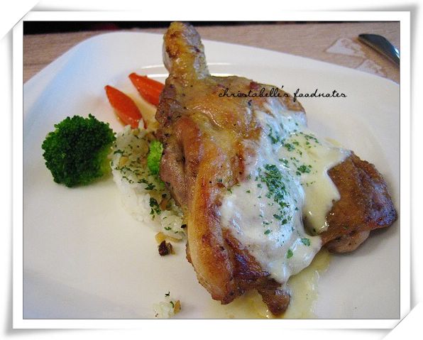 同事的奶油檸檬雞,採用的是去骨的大雞腿排,底下還附有一小份的堅果飯。檸檬奶油香滑酸溜,雞肉部分也燻烤的入味。不過整體而言,只能說不難吃,卻沒有到驚嘆連連的程度。