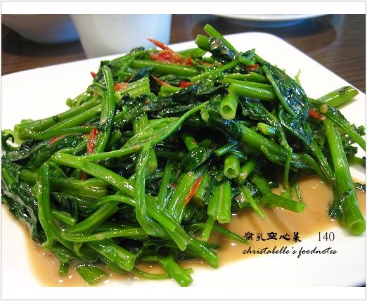 除了麵點之外,我倆也點了適合我們人數的菜餚來搭配。一是腐乳空心菜,一是老皮嫩豆腐。這兩種菜色果然都是適合配白飯食用,口味重,且由腐乳空心菜更甚。這菜炒的清脆,些許辣椒與腐乳,口口香辣。