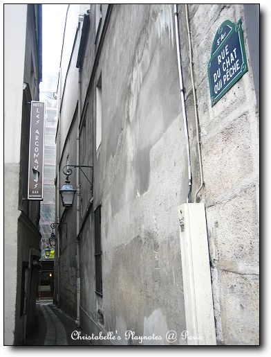 這條巴黎最短最窄的路,「垂釣貓之路」,其名字其來有自。約在兩百年塞納河尚未整治,因此偶爾會氾濫。傳說有人就看到一回塞納河淹大水時,一隻貓坐在屋頂閣樓的邊緣,打算趁機撈魚。於是這個名字就這樣流傳下來了。