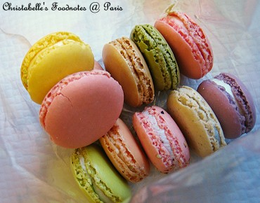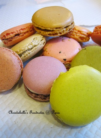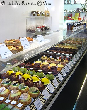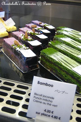 素白色的狹小店面開在人文薈萃的巴黎六區。同事跟我造訪的當兒,門口正在施工搭個鷹架,好不容易才發現店面。推門進去,清一色的東方臉孔,可想而知是日本籍的店員。長型的店內也是白色裝潢,偶爾點綴著綠色盆栽,一派簡約清爽。玻璃櫃中陳列著種類不少的甜點蛋糕,當然還有杏仁小圓餅。