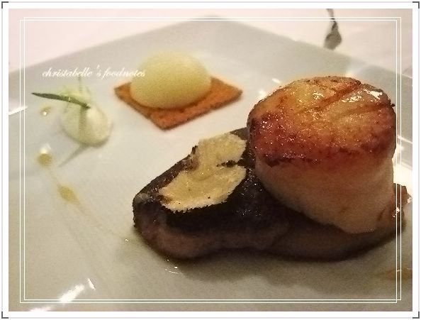 ■松露洋梨鵝肝佐香草陳年醋汁(Foie Gras Scallop Summer Truffles, Seared Pear, White Balsamic Syrup, Vanilla Bean Cream Fraiche)