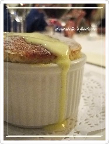 同事愛souffle,我自然將這個機會讓給她。她將souffle挖個小洞,好讓侍者淋上香草醬。眼看著奶白色的香草醬緩緩自雲端流洩而下,我們實在難掩興奮之情。